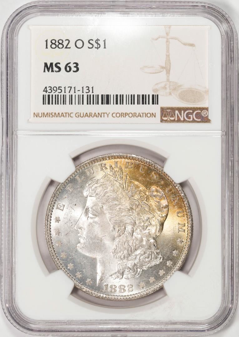 One 1882-O $1 Morgan Silver Dollar Coin NGC MS63 Nice Toning. NGC Certified.