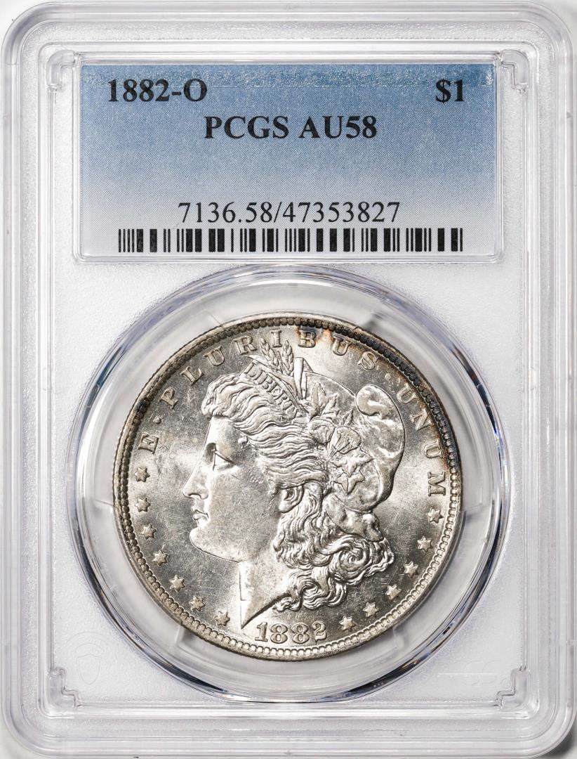 One 1882-O $1 Morgan Silver Dollar Coin PCGS AU58. PCGS Graded.