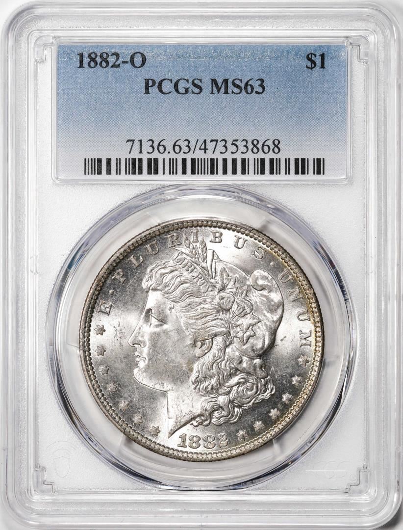 One 1882-O $1 Morgan Silver Dollar Coin PCGS MS63. PCGS Graded.