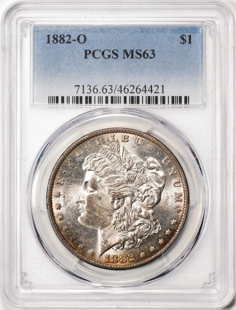 One 1882-O $1 Morgan Silver Dollar Coin PCGS MS63. PCGS Graded.