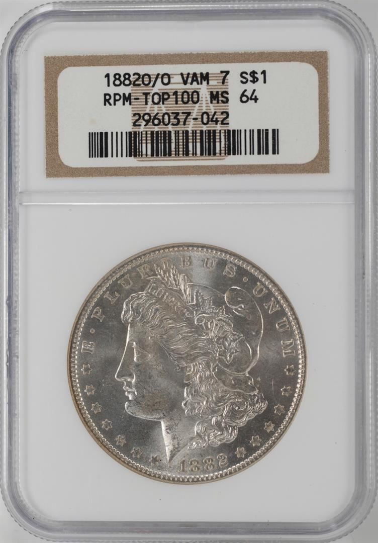 One 1882-O/O VAM-7 $1 Morgan Silver Dollar Coin NGC MS64 Top 100. NGC Certified.