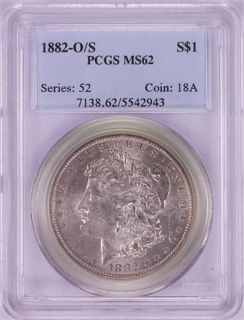 One 1882-O/S $1 Morgan Silver Dollar Coin PCGS MS62. PCGS Graded.