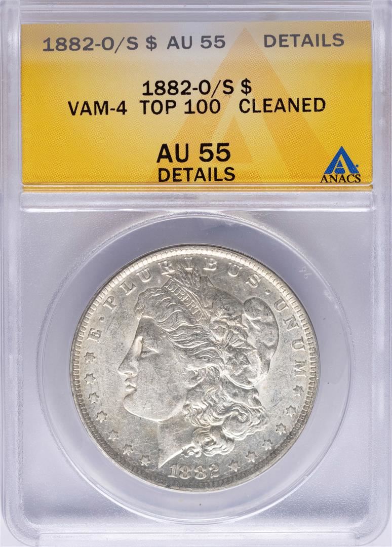 One 1882-O/S $1 Morgan Silver Dollar Coin VAM-4 Top 100 ANACS AU55 Details. ANACS Certified.