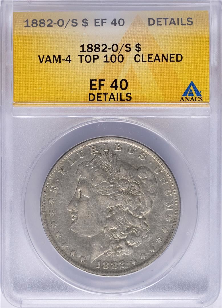 One 1882-O/S $1 Morgan Silver Dollar Coin VAM-4 Top 100 ANACS XF40 Details. ANACS Certified.