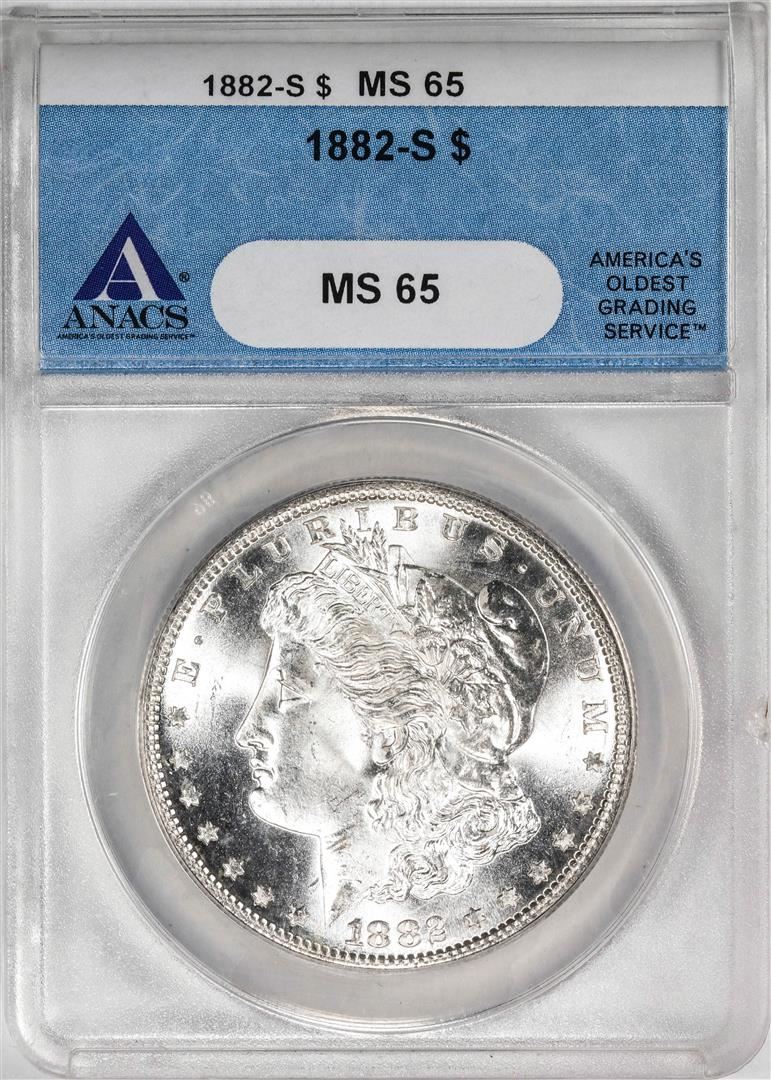 One 1882-S $1 Morgan Silver Dollar Coin ANACS MS65. ANACS Certified.