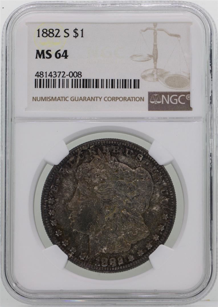 One 1882-S $1 Morgan Silver Dollar Coin NGC MS64 NICE TONING. NGC Certified.