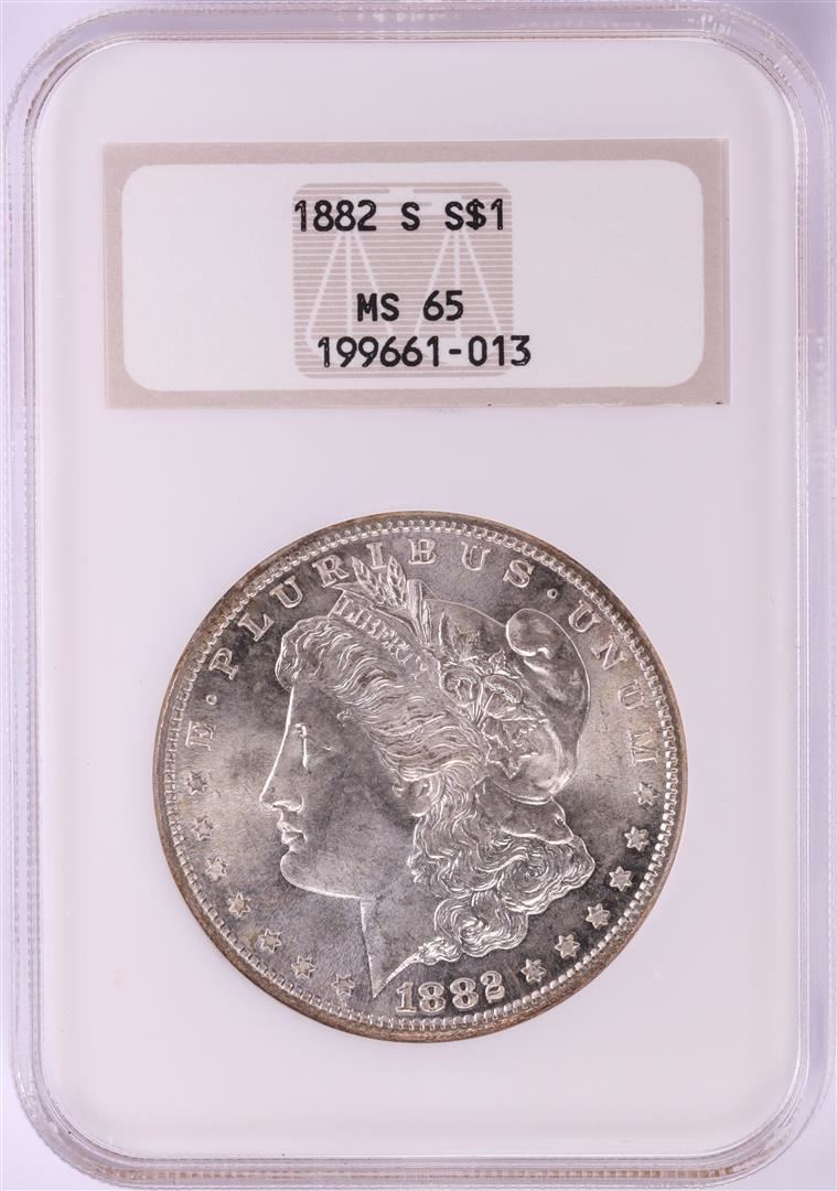 1882-S $1 Morgan Silver Dollar Coin NGC MS65 Old Fatty Holder