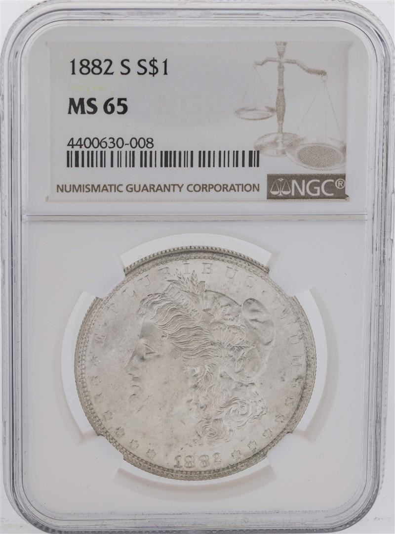 One 1882-S $1 Morgan Silver Dollar Coin NGC MS65. NGC Certified.