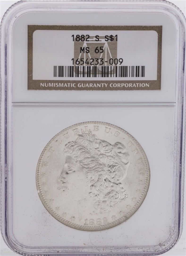 One 1882-S $1 Morgan Silver Dollar Coin NGC MS65. NGC Certified.