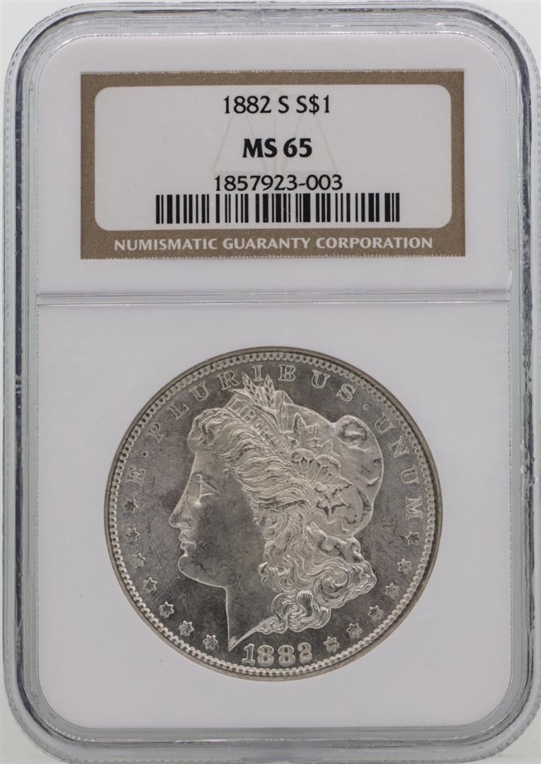 One 1882-S $1 Morgan Silver Dollar Coin NGC MS65. NGC Certified.