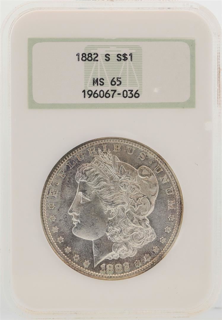 One 1882-S $1 Morgan Silver Dollar Coin NGC MS65. NGC Certified.