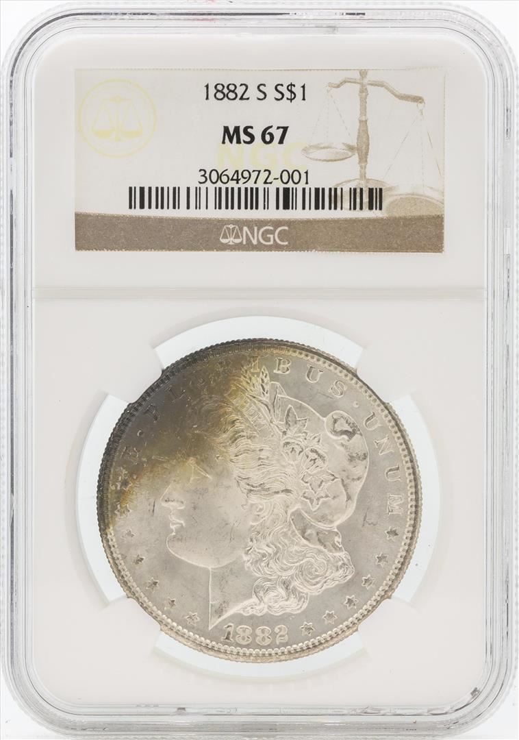 One 1882-S $1 Morgan Silver Dollar Coin NGC MS67. NGC Certified.