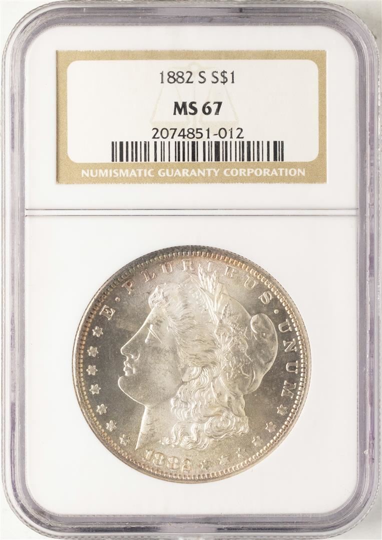 One 1882-S $1 Morgan Silver Dollar Coin NGC MS67. NGC Certified.