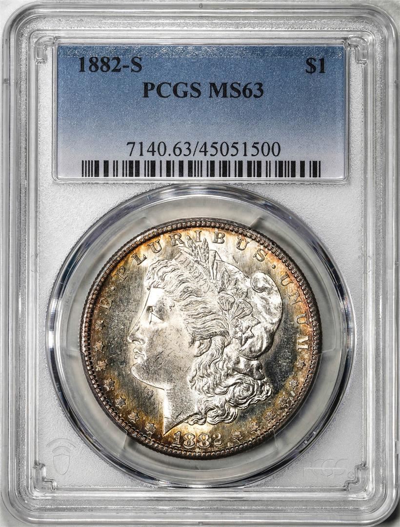1882-S $1 Morgan Silver Dollar Coin PCGS MS63 Nice Toning