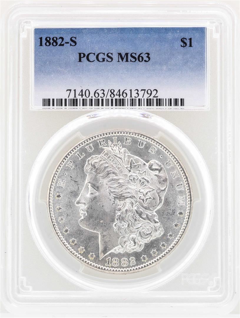 One 1882-S $1 Morgan Silver Dollar Coin PCGS MS63. PCGS Graded.
