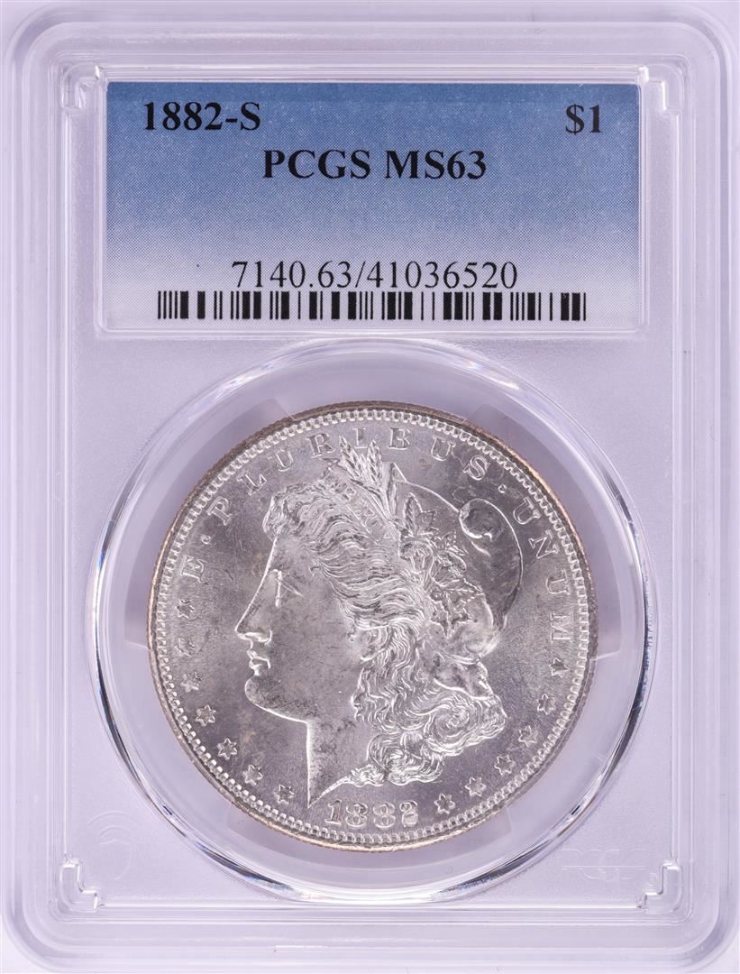 One 1882-S $1 Morgan Silver Dollar Coin PCGS MS63. PCGS Graded.