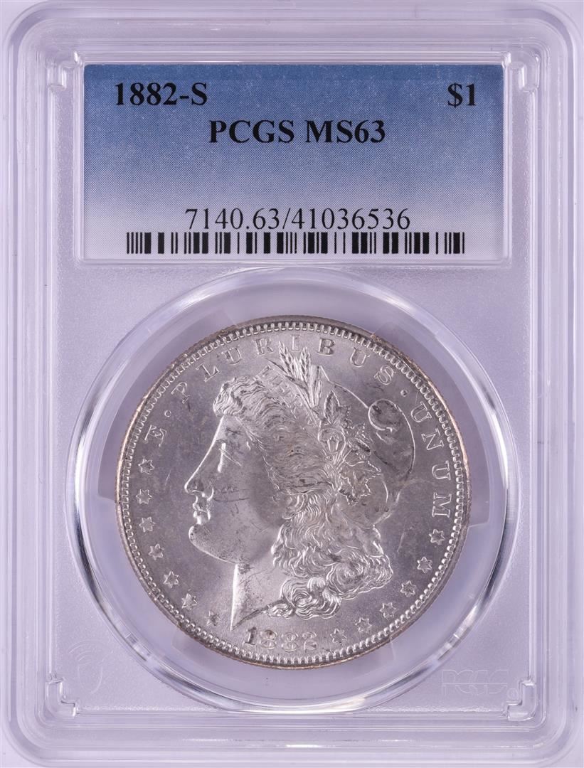 One 1882-S $1 Morgan Silver Dollar Coin PCGS MS63. PCGS Graded.