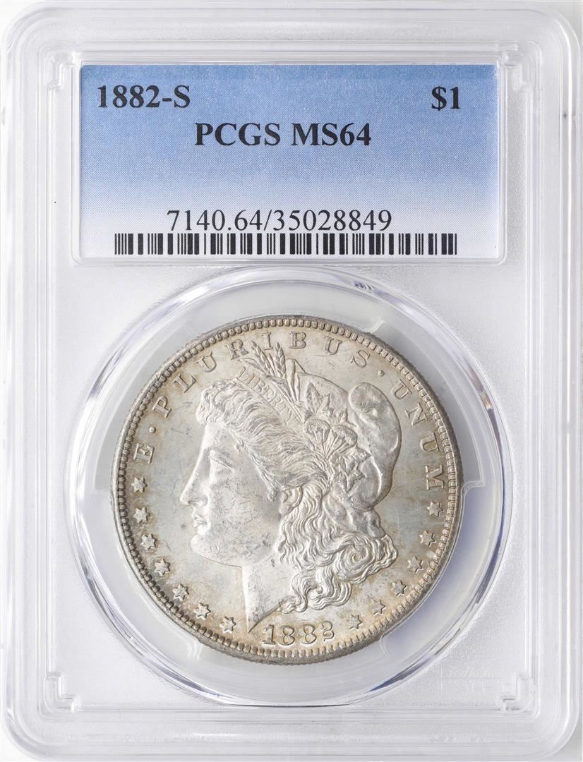 One 1882-S $1 Morgan Silver Dollar Coin PCGS MS64 Nice Toning. PCGS Graded.