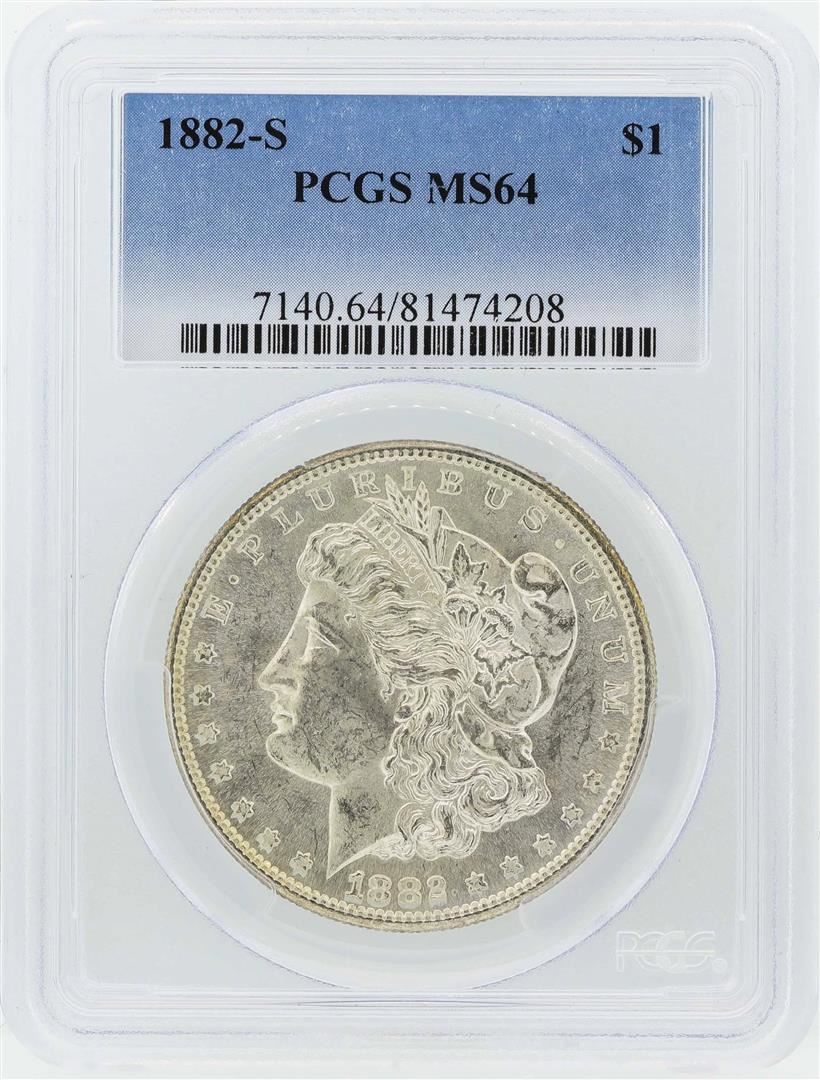 One 1882-S $1 Morgan Silver Dollar Coin PCGS MS64. PCGS Graded.