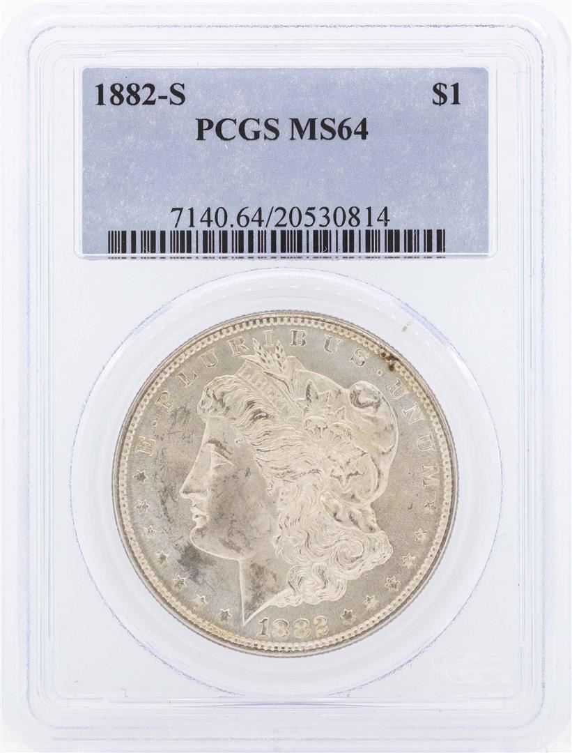 One 1882-S $1 Morgan Silver Dollar Coin PCGS MS64. PCGS Graded.