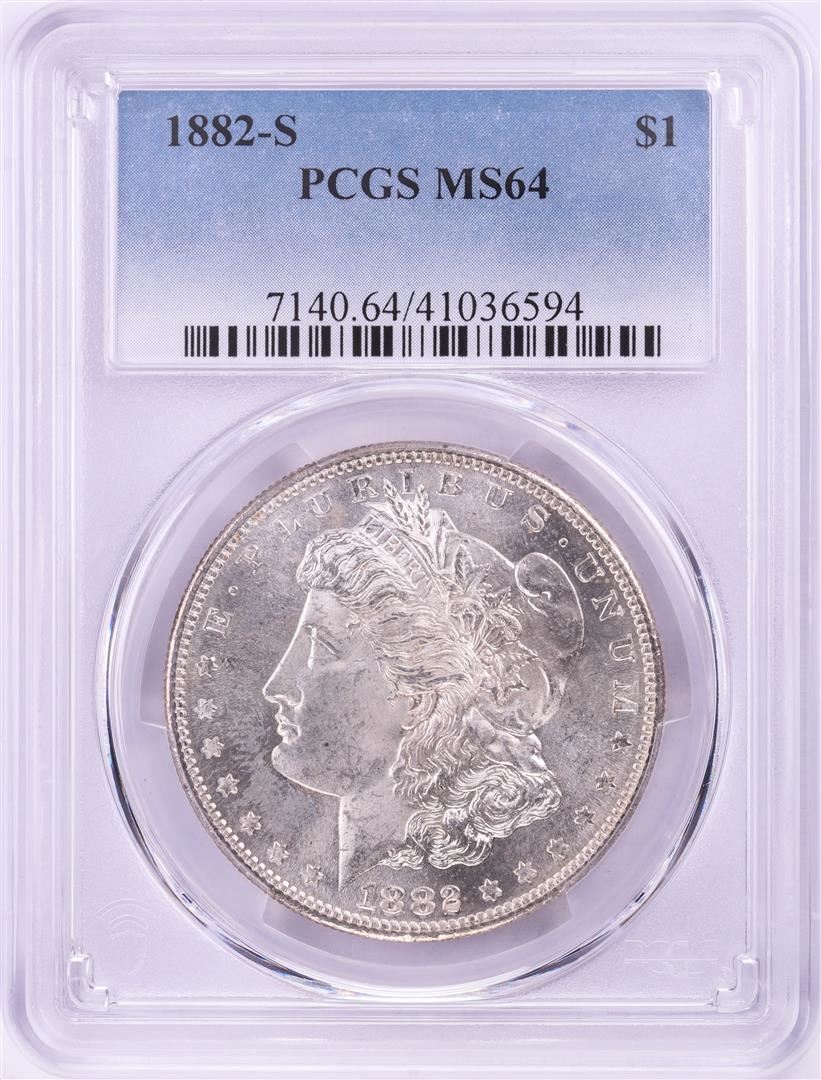 One 1882-S $1 Morgan Silver Dollar Coin PCGS MS64. PCGS Graded.