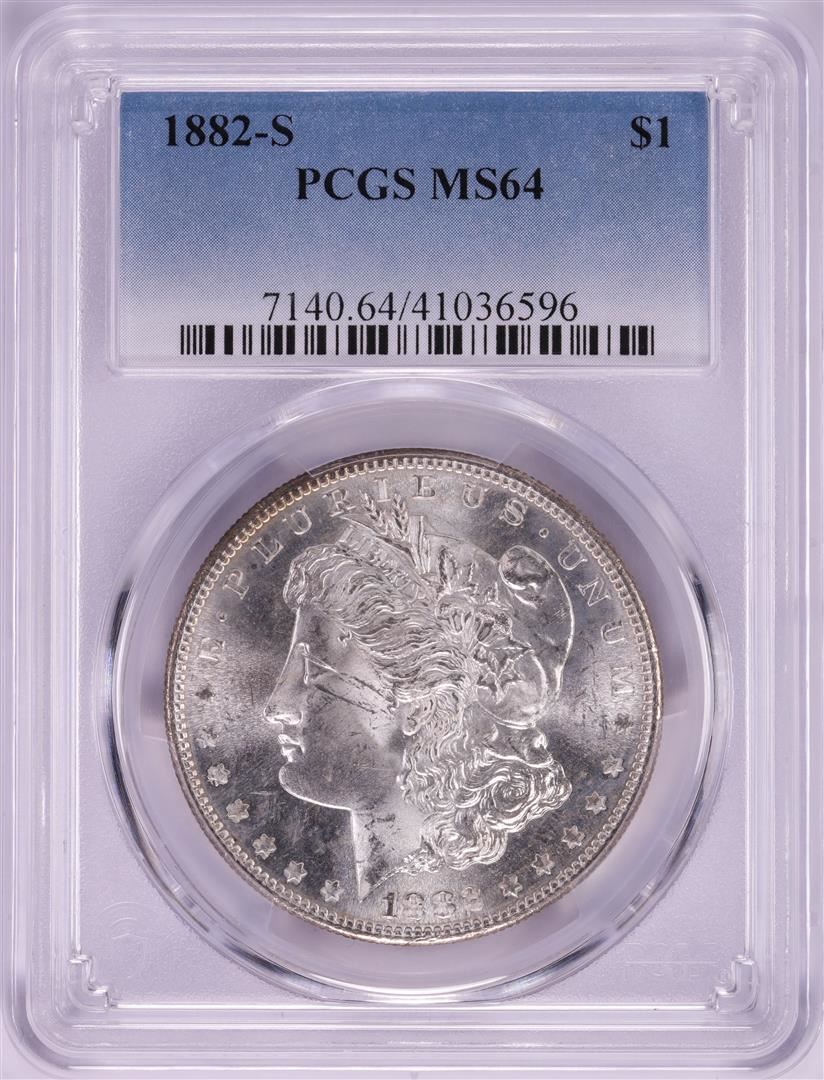 One 1882-S $1 Morgan Silver Dollar Coin PCGS MS64. PCGS Graded.