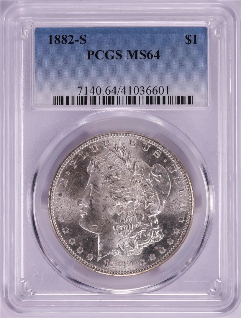 One 1882-S $1 Morgan Silver Dollar Coin PCGS MS64. PCGS Graded.