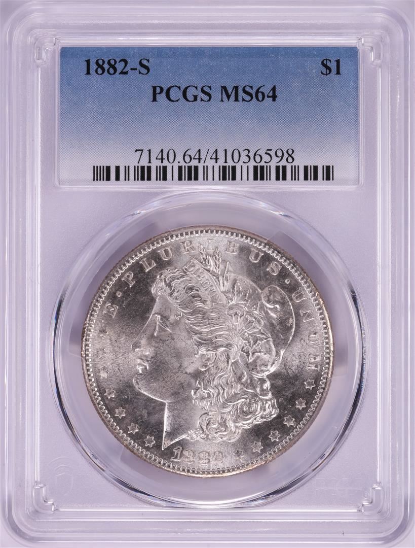 One 1882-S $1 Morgan Silver Dollar Coin PCGS MS64. PCGS Graded.