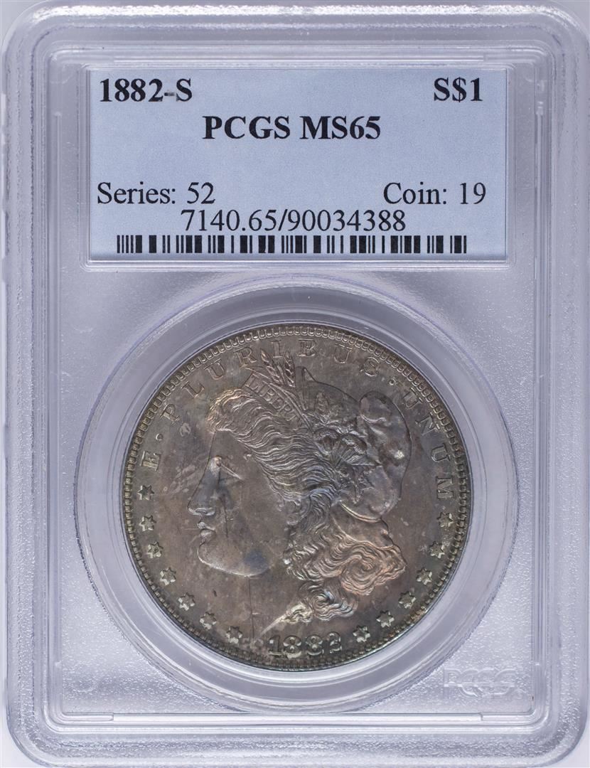1882-S $1 Morgan Silver Dollar Coin PCGS MS65 Amazing Toning