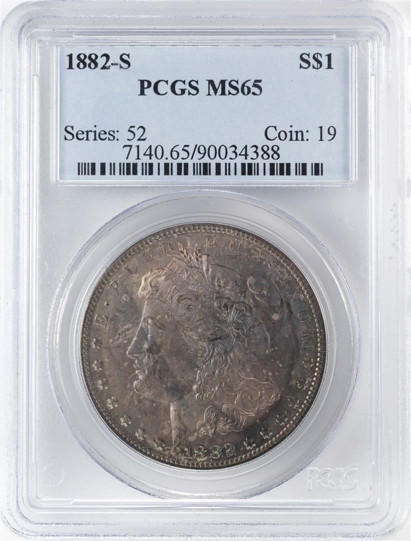 One 1882-S $1 Morgan Silver Dollar Coin PCGS MS65 Amazing Toning. PCGS Graded.