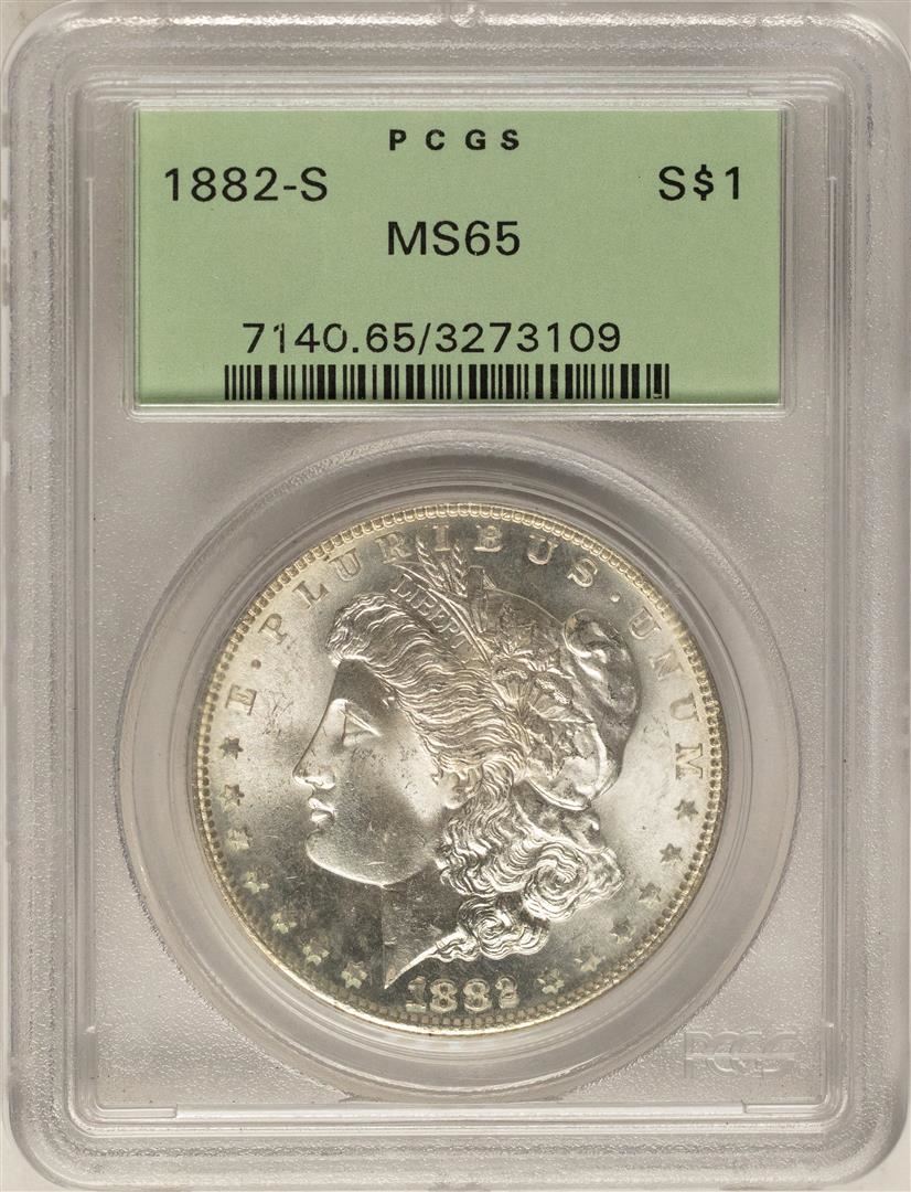 1882-S $1 Morgan Silver Dollar Coin PCGS MS65 Old Green Holder
