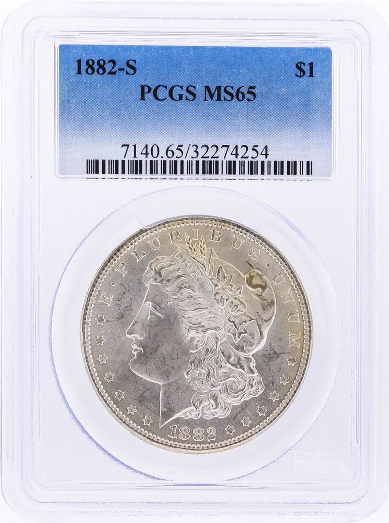 One 1882-S $1 Morgan Silver Dollar Coin PCGS MS65. PCGS Graded.