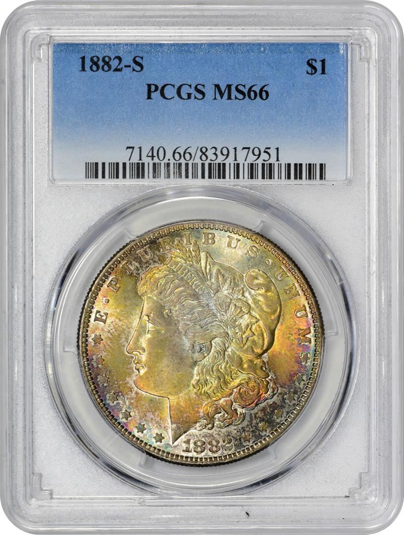 1882-S $1 Morgan Silver Dollar Coin PCGS MS66 Amazing Toning