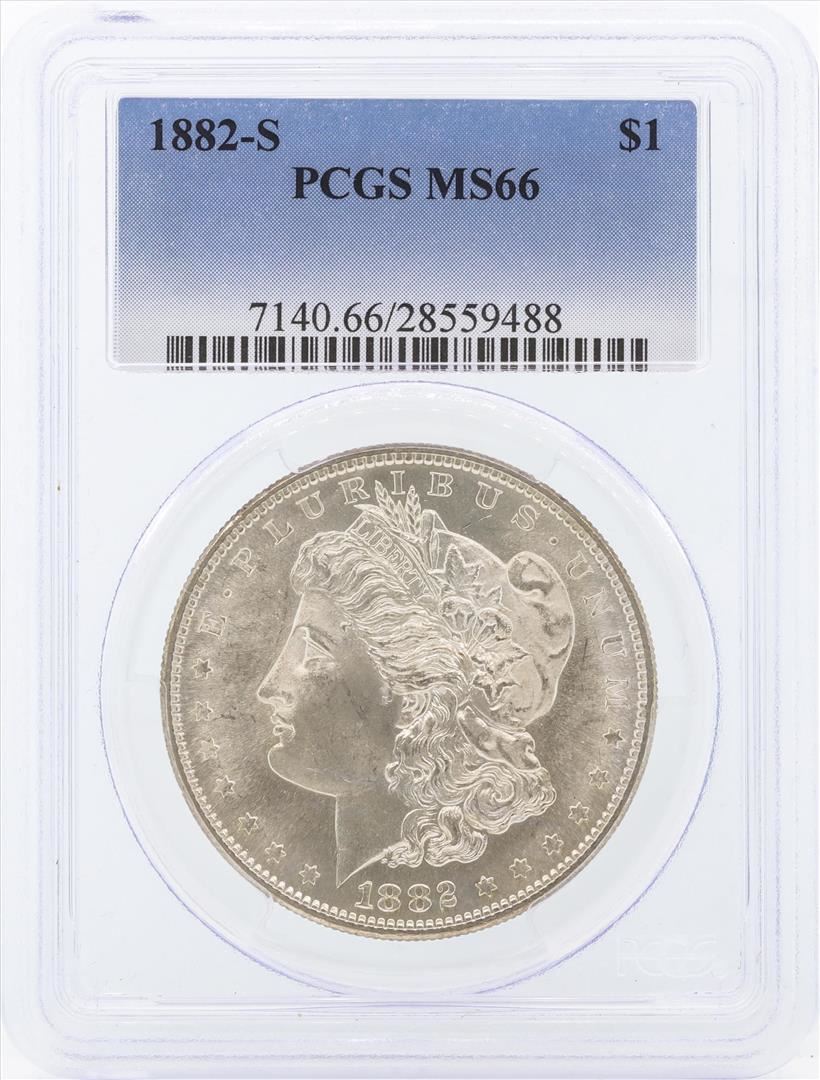 One 1882-S $1 Morgan Silver Dollar Coin PCGS MS66. PCGS Graded.