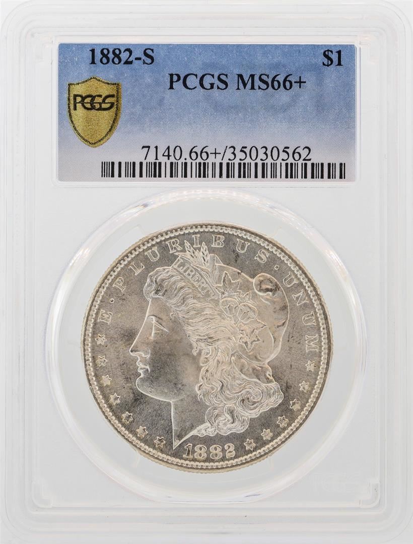 One 1882-S $1 Morgan Silver Dollar Coin PCGS MS66+. PCGS Graded.