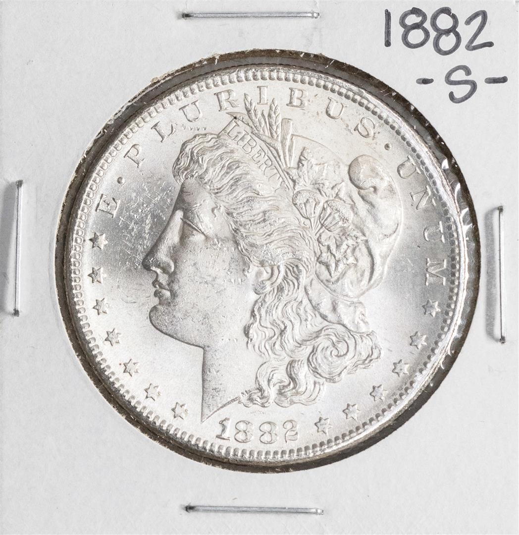 One 1882-S $1 Morgan Silver Dollar Coin.