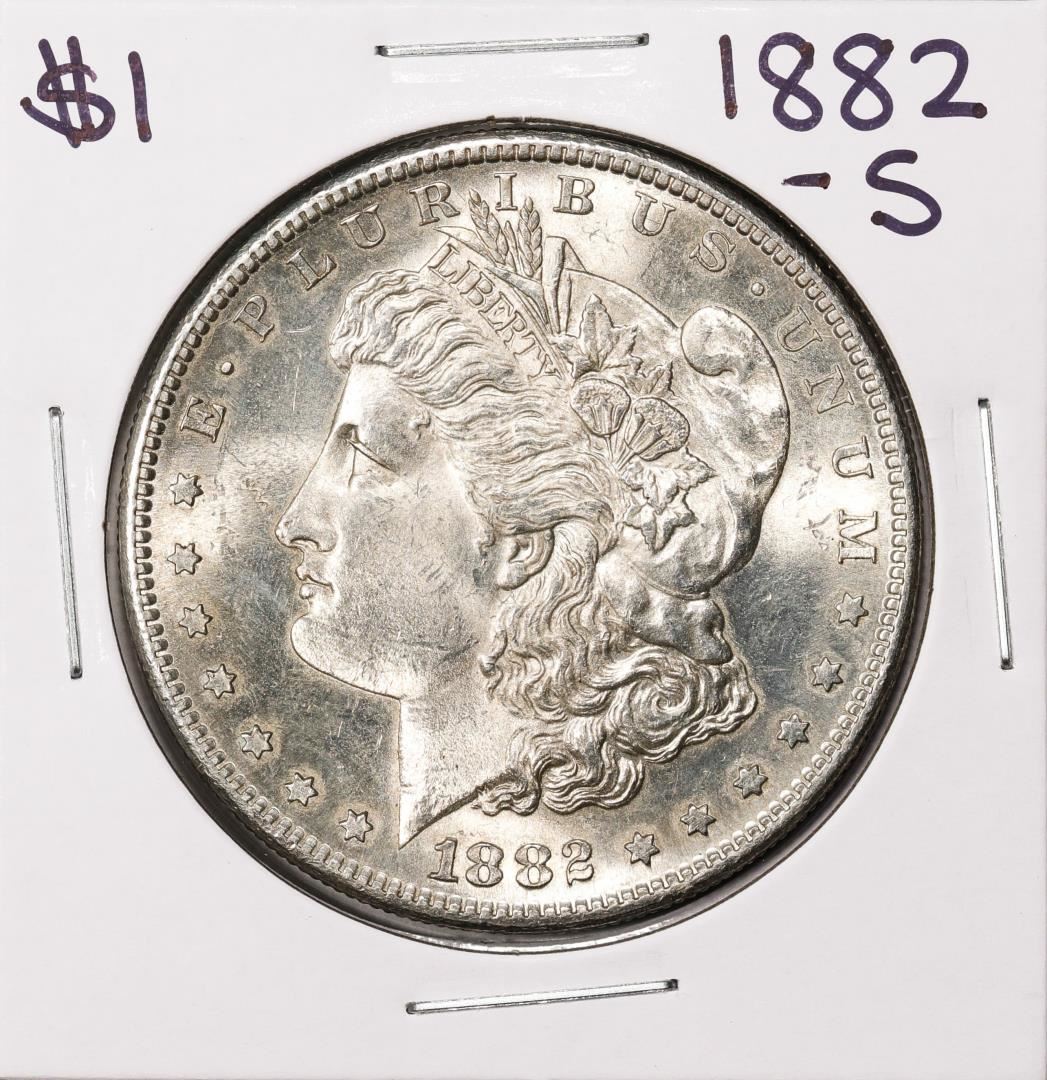 One 1882-S $1 Morgan Silver Dollar Coin.