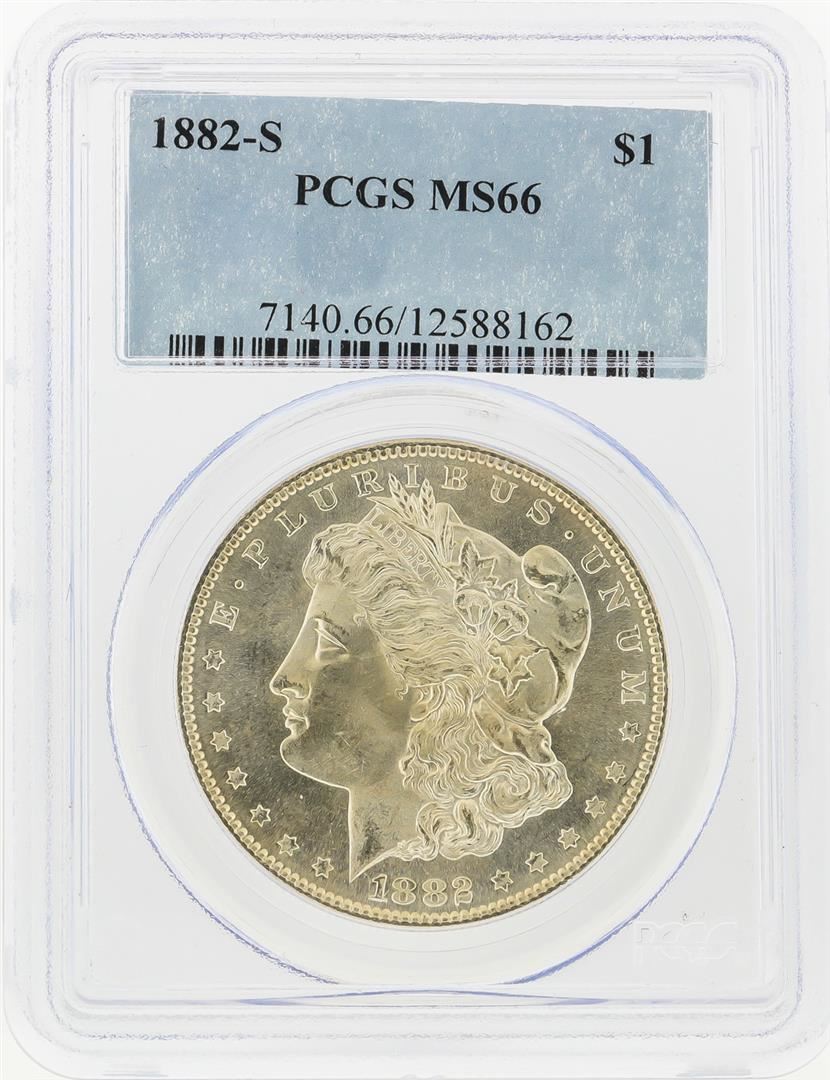 One 1882-S $1 Morgan Silver Dollar PCGS Graded MS66. PCGS Graded.