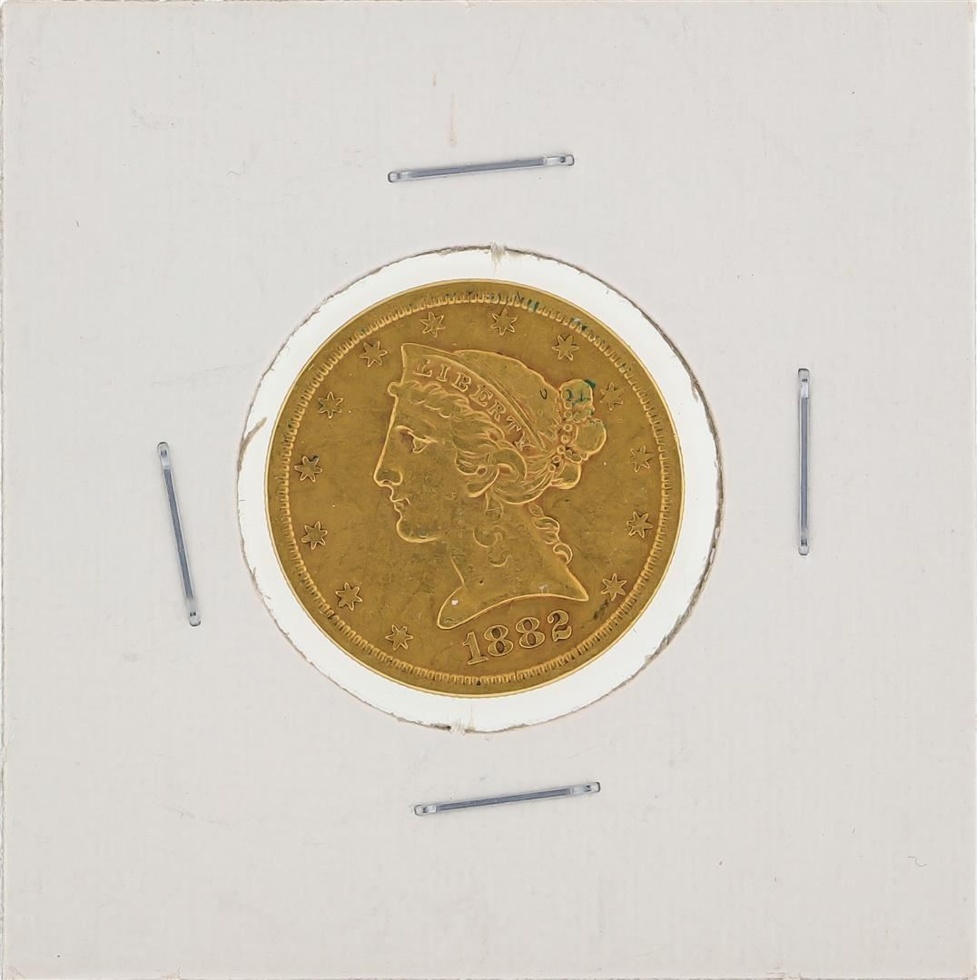 One 1882-S $5 Liberty Head Half Eagle Gold Coin.