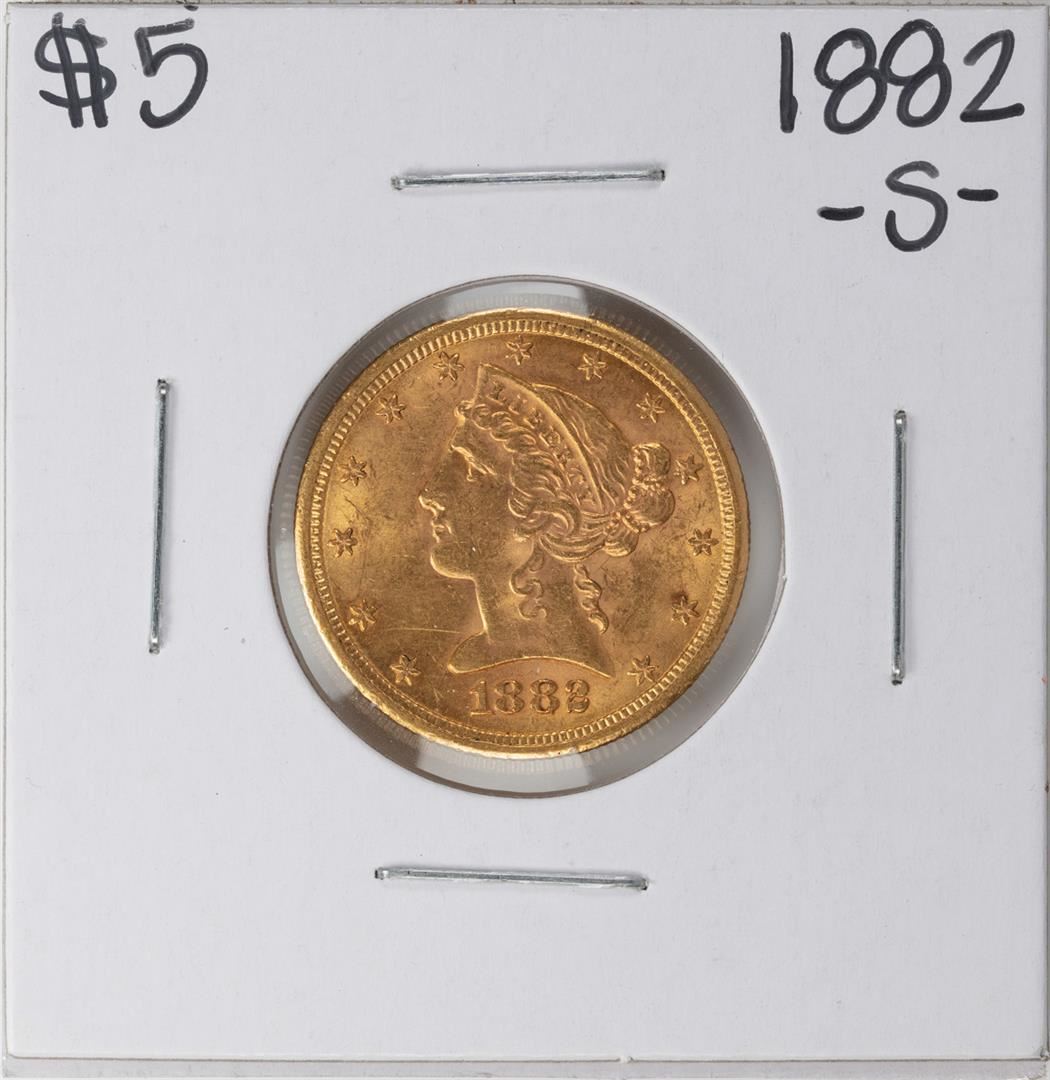 One 1882-S $5 Liberty Head Half Eagle Gold Coin.