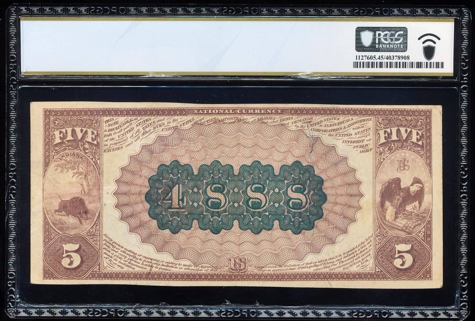 One 1882BB $5 NB of Dunkirk, IN CH# 4888 National Bank Note PCGS Choice Extremely Fine 45. PCGS Graded.