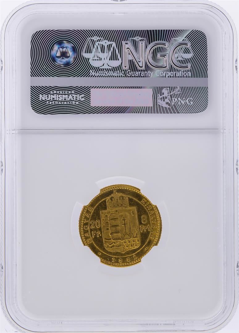 One 1882KB 20 Francs Gold Coin NGC Graded AU55. NGC Certified.
