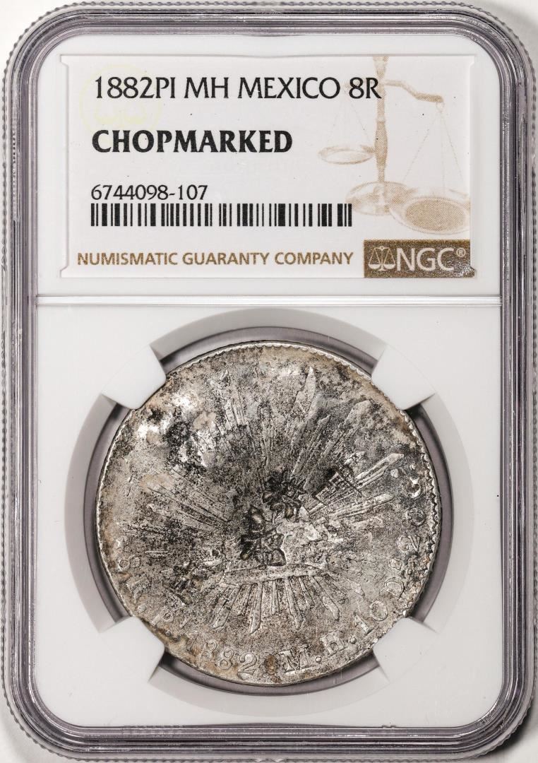 One 1882PI MH Mexico 8 Reales Silver Coin NGC Chopmarked. NGC Certified.