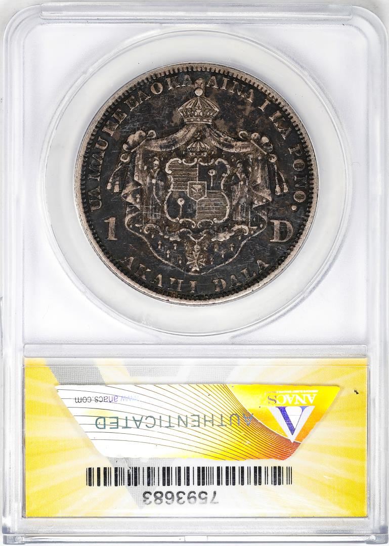 One 1883 $1 Kingdom of Hawaii Dollar Coin ANACS AU55. ANACS Certified.