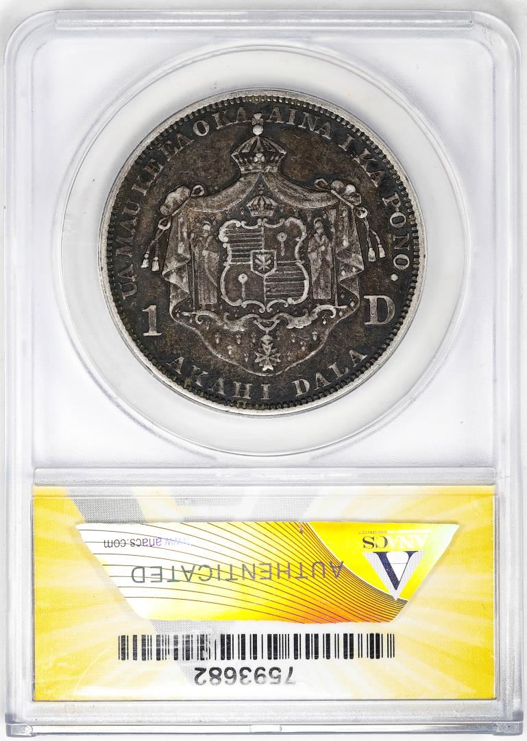 One 1883 $1 Kingdom of Hawaii Dollar Coin ANACS AU55. ANACS Certified.
