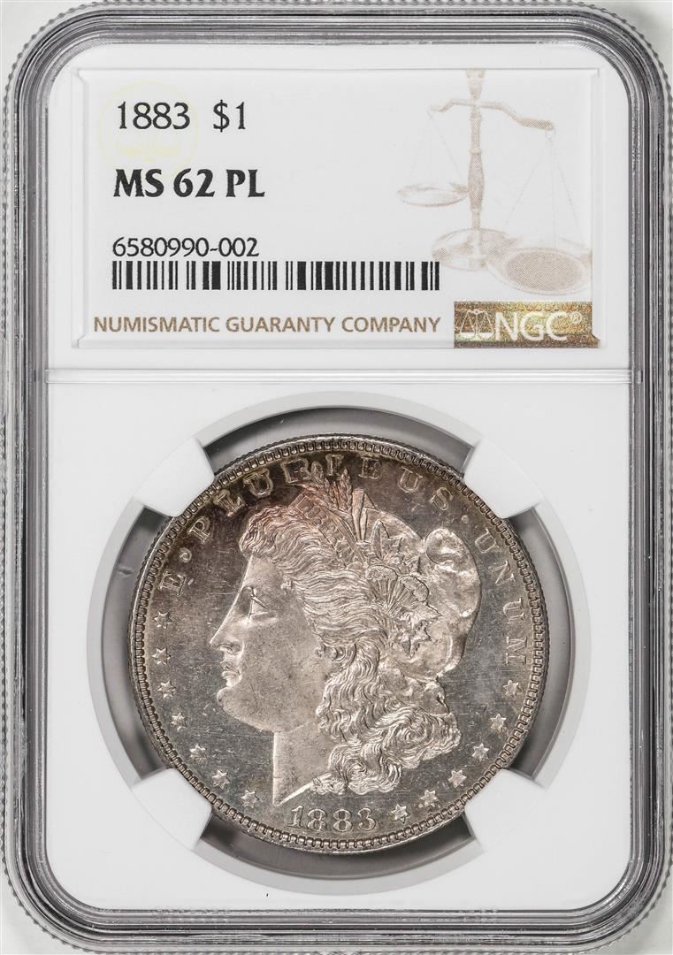 One 1883 $1 Morgan Silver Dollar Coin NGC MS62PL. NGC Certified.