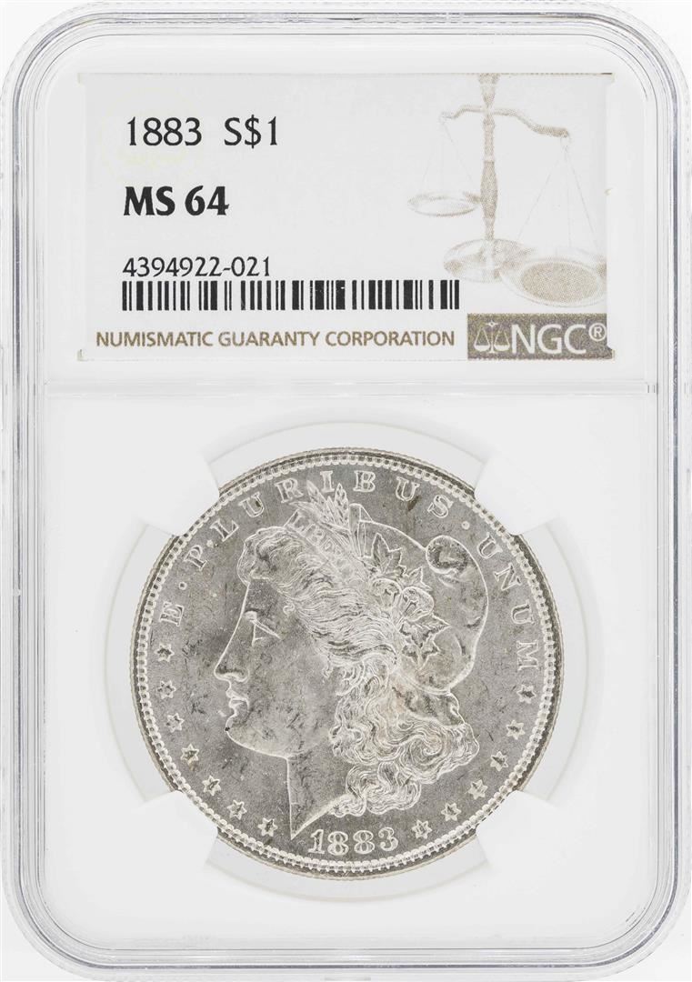 One 1883 $1 Morgan Silver Dollar Coin NGC MS64. NGC Certified.