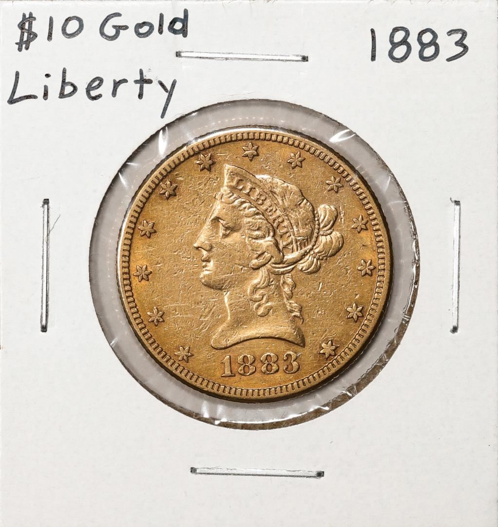 One 1883 $10 Liberty Head Eagle Gold Coin.