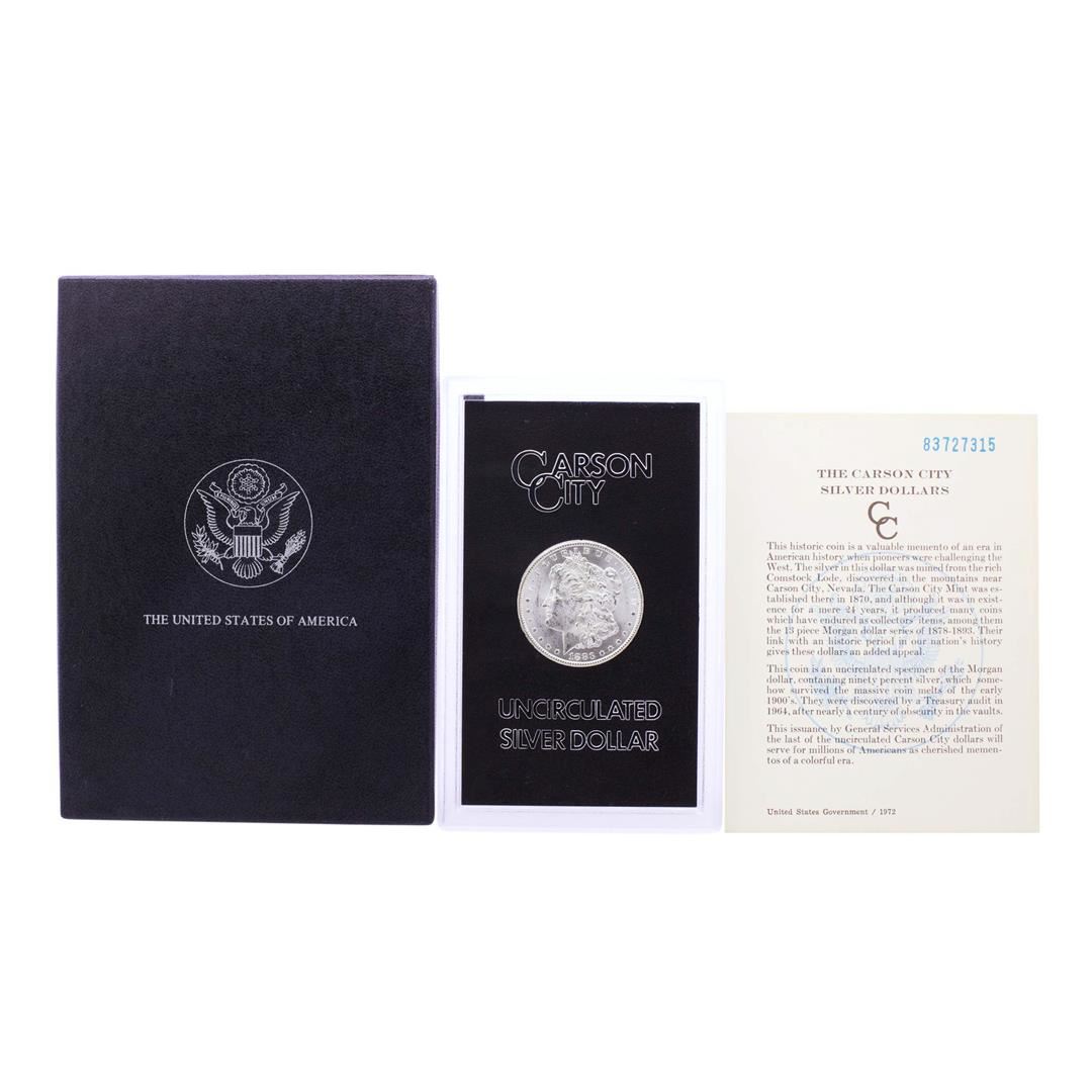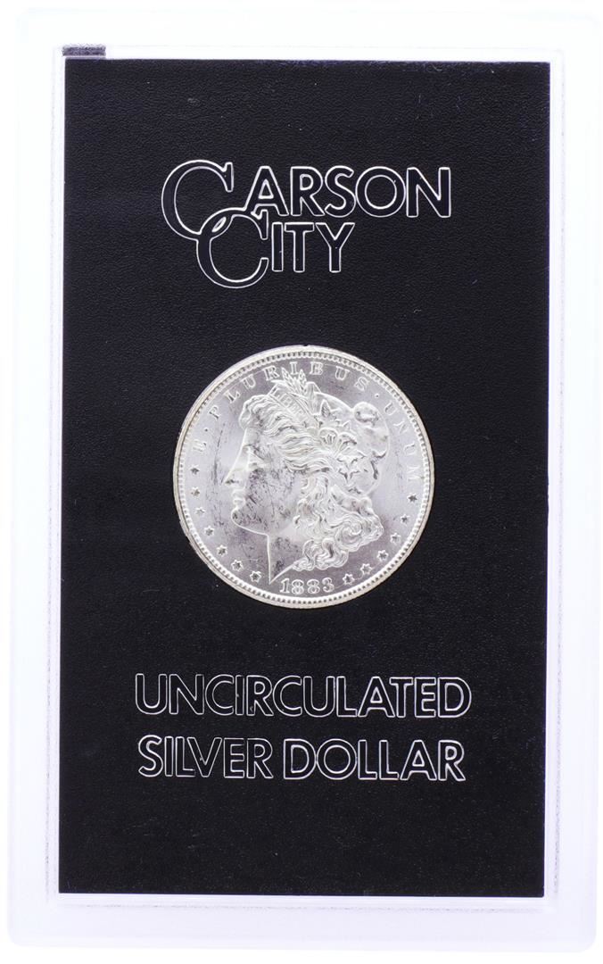 One 1883-CC $1 Morgan Silver Dollar Coin GSA Hoard Uncirculated w/Box & COA.