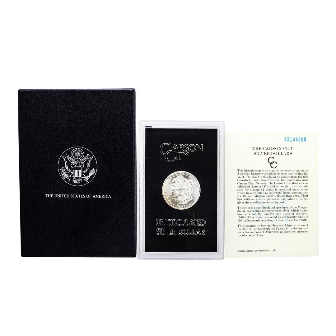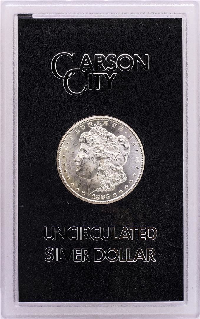 One 1883-CC $1 Morgan Silver Dollar Coin GSA Hoard Uncirculated w/Box & COA.